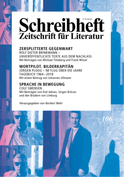 Am 23. Februar 2026 erscheint das Schreibheft 106 mit den Themenschwerpunkten: Rolf Dieter Brinkmann & Jürgen Ploog. Am 27.3.2026, 19.30 Uhr, gibt es dazu eine Podiumsdiskussion mit Frank Witzel, Johannes Ullmaier und Wolfgang Rüger, Moderation: Sigrid Fahrer. Uni-Archiv, Dantestraße 9, Frankfurt/Main. Eintritt: frei