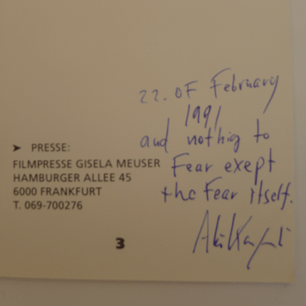KAURISMÄKI: Ich bedanke mich bei Ihnen dafür, daß Sie so viel Interesse für meine lausigen Filme aufgebracht haben.
