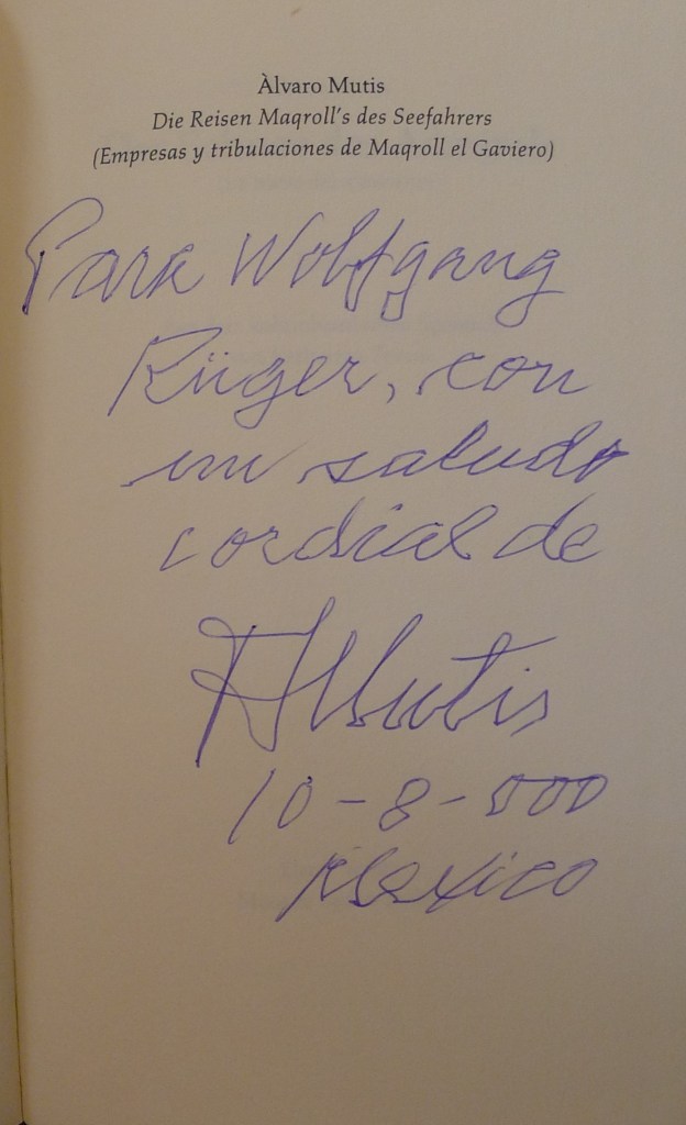 Welche Beglückung, alten Freunden, die man viele Jahre nicht gesehen hat, wieder zu begegnen. Das Gespräch da fortzuführen, wo es damals geendet hat, und festzustellen, daß alles beim Alten ist, als hätte es die Zeit dazwischen nicht gegeben. Lieblingsautoren gehören zu den Freunden, und Bücherlesen ist ein Gespräch zwischen Leser und Autor. Der Kolumbianer Alvaro Mutis ist einer meiner besten Freunde. Ich kenne ihn seit Jahrzehnten. Sein von ihm erfundener Maqroll, der Gaviero, ist neben Hoke Moseley mein liebster Romanheld.