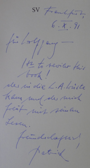 Nach absolviertem Tagespensum geht er oft noch auf einen Sprung ins „Mel’s drive-in“. Das liegt zwei Häuserblocks weiter auf dem Ventura Boulevard. Das „Mel’s“ sieht original so aus wie in „American Graffiti“: Rot-grüne Autositze, die Bar wie ein chromblitzendes Armaturenbrett, Sechziger-Jahre-Fotos an den Wänden, Rock-olas an jedem Tisch mit Singles von Sam Cooke, Richie Valens, Martha & The Vandellas und den Beach Boys. Wen Patrick Roth mag, den führt er zu „Mel’s“ und verführt ihn zu einem „New Yorker“-Sandwich und einem Bananenshake. „Das Sandwich müßt ihr unbedingt probieren“, schwärmt er. „Das ist mit Pastrami. Ich glaube, das gibt’s in Deutschland gar nicht?“ Wir waren mehrmals im „Mel’s“, haben Pastrami-Sandwiches gegessen und den wieselflinken Kellnerinnen bei der Arbeit zugesehen. Thema unserer Gespräche waren immer Musik, Kino, Literatur und – die Liebe. Aber das ist eine ganz andere Geschichte.